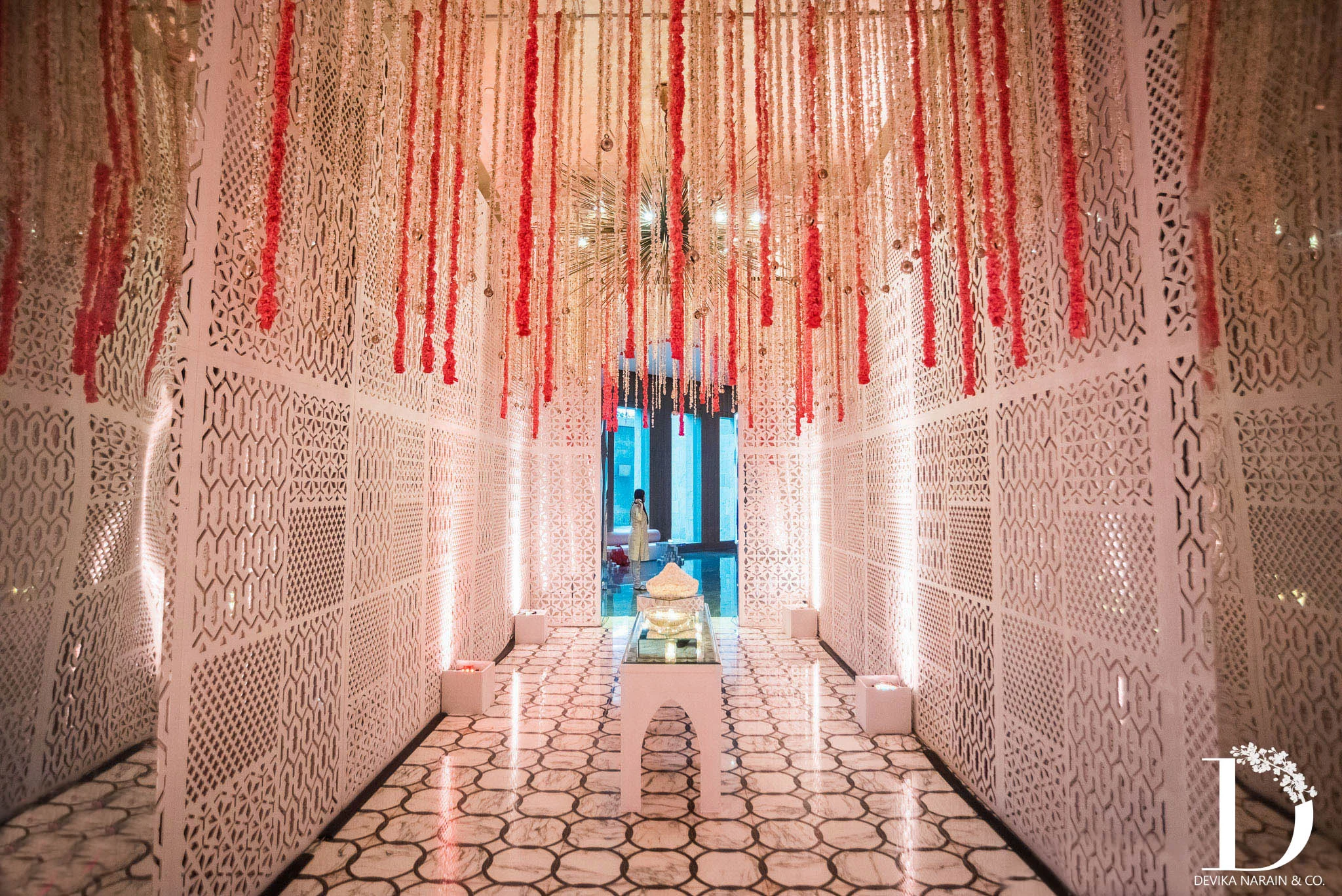 The biggest challenge in the space was creating something fantastic in the large pre function areas of the Hyatt in Delhi. We treated each one as a prelude to the main space, and worked with water-bodies (we had four of them!), jaalis and installations to make them as spectacular as the spaces they were leading to.